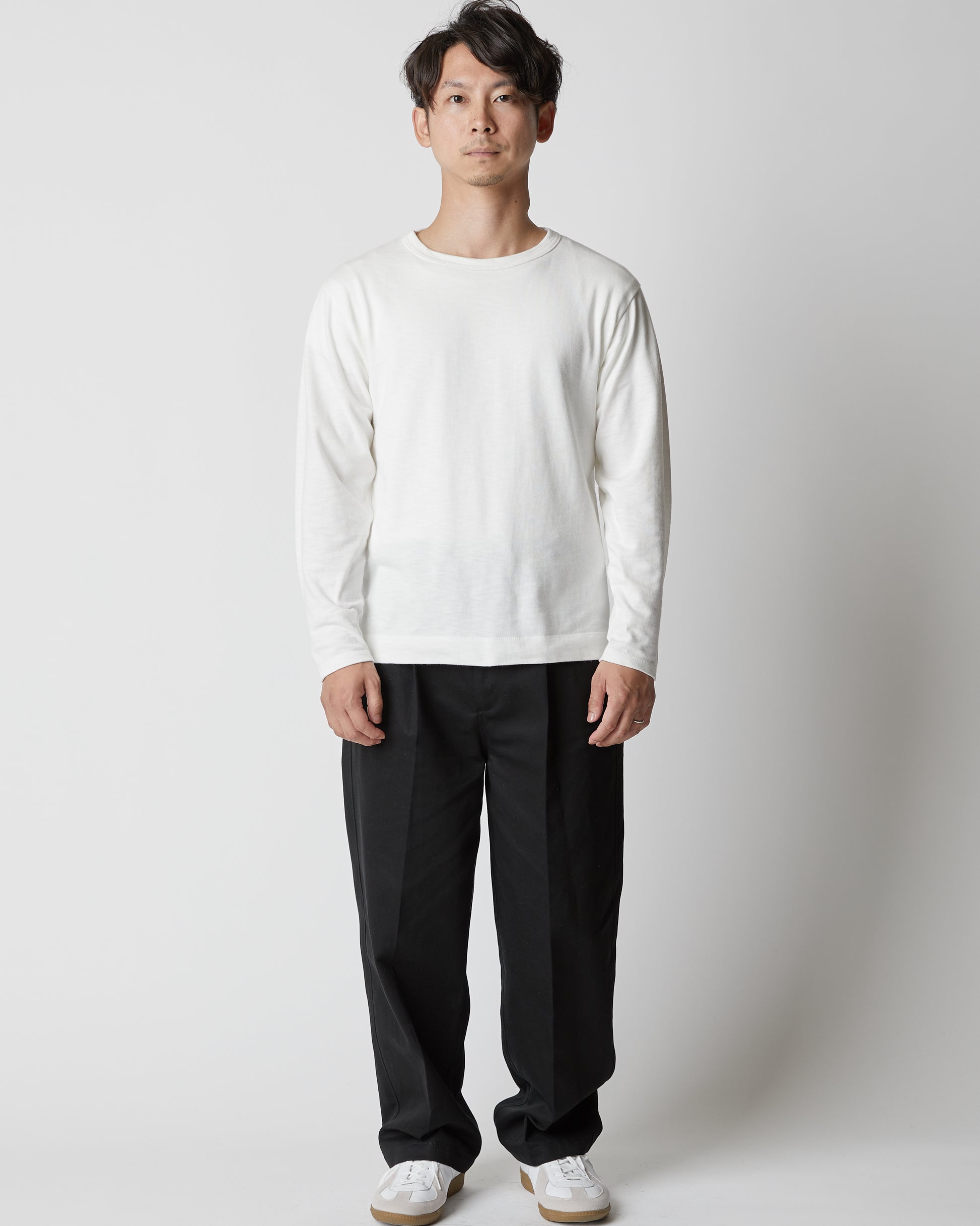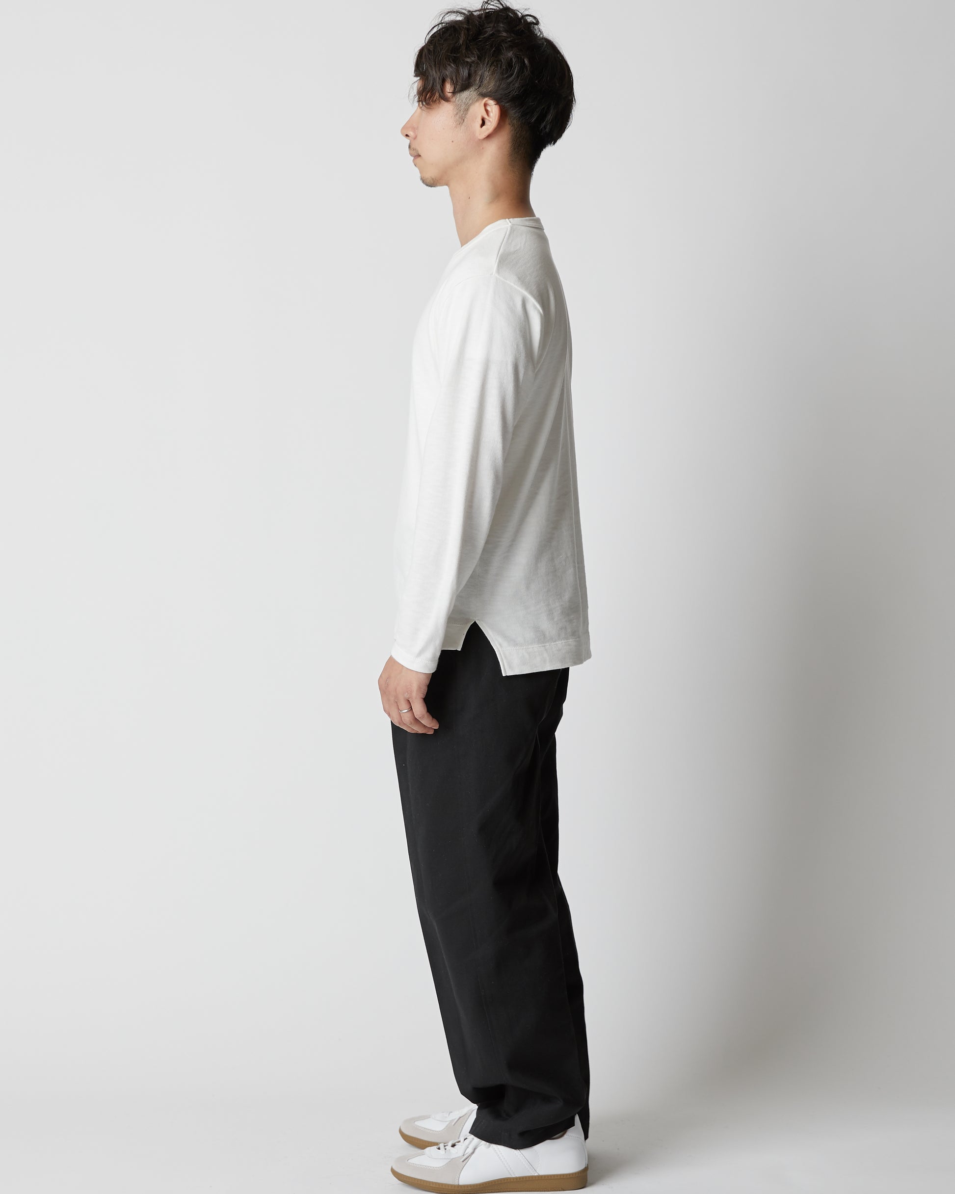 This long-sleeved T-shirt is made from the same organic cotton fabric as calm160's standard item "calm T-shirt."
