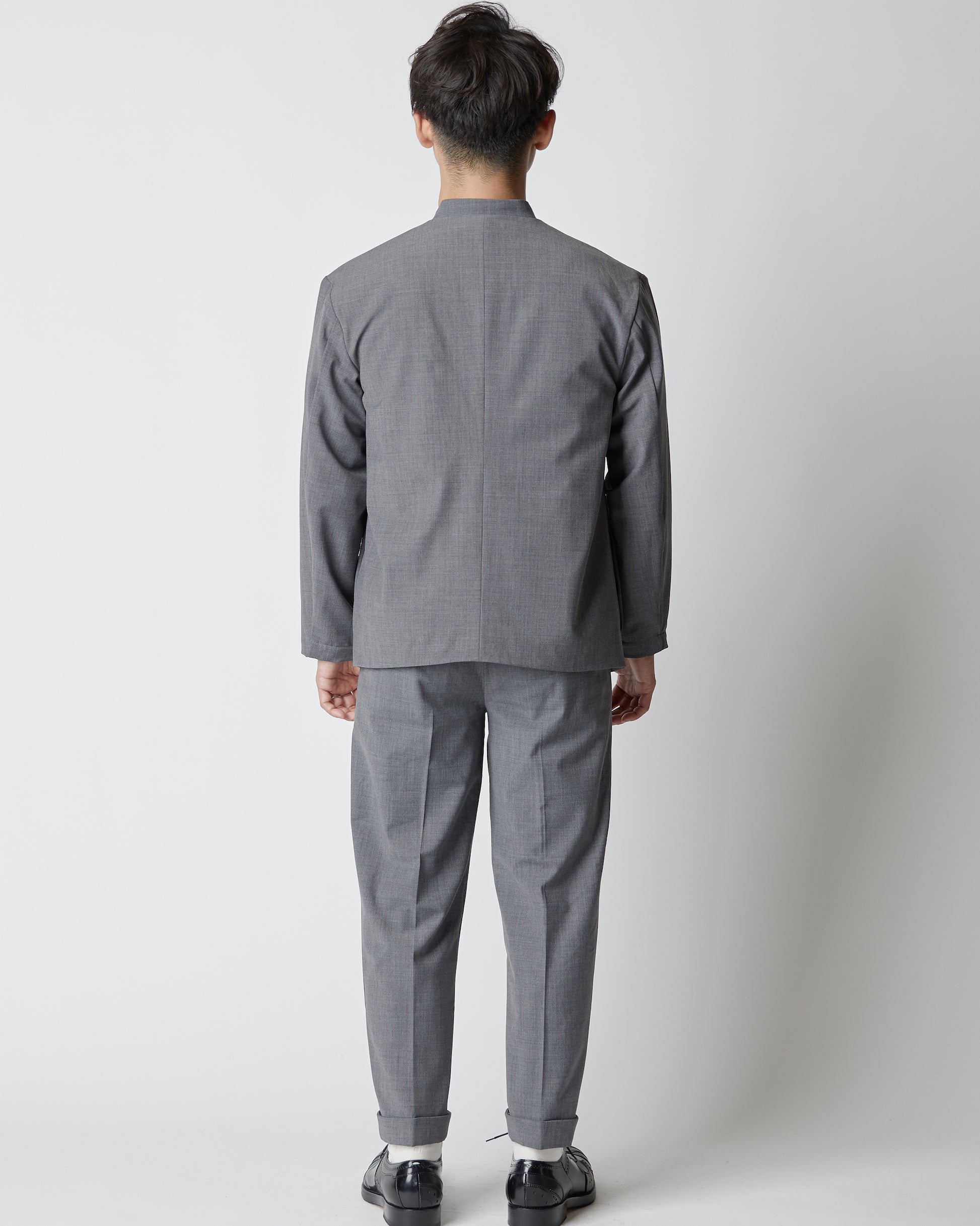 calm160の定番アイテム「裾直し不要のcalm Tapered Slacks」と同じ生地を使ったセットアップで着用できるジャケットです。